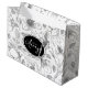 Ett vackert mönster av hand plockade-blomman ligger i skuggor av grått på vit bakgrund. Den slående presentpåse som visas här innehåller också ditt namn och/eller annan valfri text i vitt på svart. Sök i ID939 om du vill visa alla produkter i den här designuppsättningen.