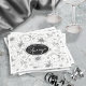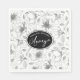Ett vackert mönster av hand plockade-blommans konturer i skuggor av grått används för att skapa biet i denna moderna samling. Den slående pappra napkin för valfri tillfälle visas här med handskriven text för elegant och en mall för att lägga till ditt namn och/eller annat meddelande på en svart bakgrund. Sök i ID939 om du vill visa alla produkter i den här designuppsättningen.