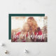 Dela upp semestern med dessa julkort med ditt favoritfoto i liggande eller stående orientering i slående full bleed. "God Jul" visas längst ned som en textöverlagring i vit borstbokstavstypografi. Anpassa med ditt familjenamn eller namn under. Kortens baksida har ett vattenfärgspräckligt mönster i festlig grangrön.