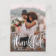 Tack för det moderna bröllop--kortet i elegant har du ett favoritfoto med lodrät eller porträtt-orienterat bröllop med "tackfull" överlagrad text i vit handskriven skrift. Anpassa med namn och lägg till en anpassningsbar med ett förtryckt tack och namnteckning på baksidan, med ytterligare ett foto. Utrymme för din returadress och din mottagaradress.
