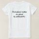 Det här är en skjorta med ett "phun"-språkskämt. På framsidan står det: "användan av det konsonerande digraph för att göra /f/ ljud på engelska beror främst på inflytande från grekiska." På baksidan står det: "Fakten får mig att kalla SLAPHAPPY.