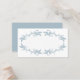 Vit bröllop-platskort med elegant/eskort, med ett markerat blått ovalt, blomstrande textområde. Anpassa för hand för varje gäst vid bröllop.