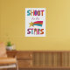 Roligten målade stil och skrev ut spådomar i meddelandet SHOT FOR STARS i blått, gult, lavender, orange och rosa mot en vit bakgrund med en matchande bild av stjärngrafik.