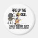 En manlig fiskedesign som kokar på en flicka och ordspråket att när man skjuter upp grillen så blir det ingen fångst och frigivning. De gör underbara gåvor för manar, kvinnor och barn som gillar fiske.