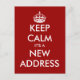 Skjutbart vykort för flytta av lugn i behålla för ny adress. Gör din egen lustiga lugn i behållan och fortsätt med parodi-design för ditt nya hus. Keepcalm humor för hem och affärer. Ändra kvantitet för att få det billigaste prisa per betalkort.