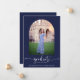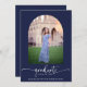 Navy Blue Modern Elegant Script Studenten Arch Photo Announcement med handskript för elegant tillsammans med ett foto i fullt på framsidan och ett fyrkantigt foto på baksidan. All text och färg är fullt anpassade - perfekt för elegantens tillkännagivande för studenten. Kontakta oss på cedarandstring@gmail.com om du behöver hjälp med designen eller matchande produkter.