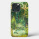 Vattenfärg på silke - manuell utrustning; liten flod i landskapet sommaren i skogen