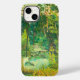Vattenfärg på silke - manuell utrustning; liten flod i landskapet sommaren i skogen