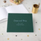 Visa er tilltro till er relation med gästen bok i bröllop som förklarar att ni kommer att vara tillsammans under all evighet. Med den här anpassningsbara versionen kan du ange ett eget namn och bröllop-datum för framsidan, lägga till intertwining monogram initialer på baksidan om du så önskar och välja spelar ingen roll text som du vill använda för ryggraden. Den mjuka skifferblåa färg verkligen står emot mörkens grönt-bakgrund.