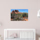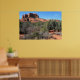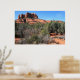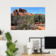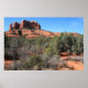Det här är en lågupplöst bild för webben. Den poster du får har en skarp färg och vass detaljrikedom. En panoramisk syn på skogen och landskapet vid katedralbasen Sten i Sedona, Arizona. Fotografi av Minerva Bloom.