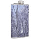 Detta digitaliserade, grafiska foto, av en ren, trädskog, som visas i muterad form, toner av, violett, lila, blått, vitt, grått och svart är gjutet i kvarteret, spår av, en blek, blått, tvinnat.
