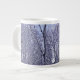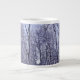 Detta digitaliserade, grafiska foto, av en ren, trädbevuxen skog, som visas i muterad form, toner av, violett lila, blått, vitt, grått och svart är gjutet, i kvarteret, spår av en, blek-blå, skymd.