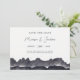Letar du efter ett "save the date"-kort för ett rustikt skogsbryllup i bergen? Titta då på vår skogiga och rustika landskapsbild för bergsbryllup "Save the Date"! Vår handritade kollektion för ett elegant och modernt skogsbryllup. Dessa bergslandskap är handritade av mig, så du hittar inte designen i någon annan butik. De askgrå bergen, en strandlinje med reflektioner av tallar och en charmig tallskog illustrerar en rustik bergsbröllopsfest. Vacker för alla utomhusbröllop med en touch av klass. Vackra berg rustika skog "save the date".