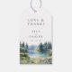 Dessa eleganta akvarell skog sjöside vildblomma blommiga bröllopsfavorit-taggar kan anpassas med din information i modern typografi. Designad av Thisisnotme©