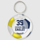 Den här anpassningsbar fotbolls-nyckelkedjan för pojkar med blå och gult färg har en klassisk fotboll med blå, gult och vita paneler - anpassa spelarens namn och jersey-nummer plus skola och team mascot namn - av katz_d_zynes