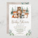 Kinesisk inbjudan till babydusch i skogen med en vacker vattenfärgillustration av fyra skogsvänner