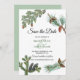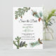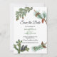Ett vackert skogsprojekt i gräs med gräs, grenar, gräs och nål. En elegant sparar datumkortet med ett grönt perfekt tema för bröllop. Baksidan av kortet visar ett minimalistiskt monogram. Det finns också möjlighet att matcha bröllopsinbjudningar och andra artiklar i kontorsartiklar.