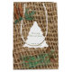 En gräs-skog av rustiskt ursprung planerades med faux burlap struktur i bakgrunden tillsammans med vintage gräs och grenar samt en vit silhuett av Julgran och din anpassningsbar. Idealisk för julklappar och dekor. Anpassa julklappen med din text och gör den till din egen.