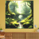 En solupplyst skogsscen breder ut sig med träd som blivit nedbrutet i lush Greenery. En lindningsström, gnistrande med solljus, flyter genom skogens hjärta. En rustik, övertäckt bro är över strömmen och bjuder på prospektering. Ferns och andra pulserande bladverk i banker skapar lugn och naturskön. Den allmänna stämningen är en anda av fred och harmoni, som ger en glimt in i en gömt, förtjusad värld.