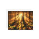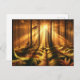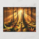 Gå in i den fantastiska skönheten hos en solbelyst skog. Med det här vykortet fångas de gyllene strålarna från solljusfiltrering genom högt, majestätiskt träd, och långa skuggor kastas och en magisk glöd skapas. Skogen golv är kantad med moss, ängar och spridda vilda blommor, medan det tända ljuset ger värme och djup. Perfekt för naturentusiaster, vandrare och dem som hittar solens i hjärtat av skogen.
