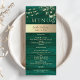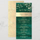 Sätt en förfinad ton för din fest med denna eleganta moderna bröllopsmeny, med en rustik träbakgrund i par med djupa smaragdgröna nyanser. Boho-inspirerad guldbroderi och glödande strängljus ger vintage-karaktär och sofistikerad värme. Perfekt för höst-, vinter- eller utomhusbröllop, denna meny blandar rustik elegans med modern stil. Anpassa med dina meny detaljer för att skapa en sammanhängande och minnesvärd dukning på receptionsbordet.