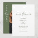 Skoggröna foto Spara datum-inbjudan är ett enkelt men elegant sätt att berätta för dina nära och kära att du ska gifta dig. Oavsett tillfälle är det ett unikt sätt att meddela din kommande bröllop.