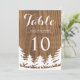 Om du gifter dig utomhus, överväg då att omfamna detta perfekta skogbröllopstema! Dessa vackra bröllopsbordnummer har en skog och ett landskap i vitt över en falsk trästruktur i mörkbrun bakgrund. Du kan anpassa exempelfälten för texten efter eget tycke. Andra matchande inbjudningar finns också tillgängliga.