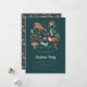 Söt rustik grön inbjudan med en söt nostalgisk skoggrön och rosa traditionell klassisk julillustration med skogsdjur i naturen med snö. Perfekt för att inbjuda dina nära och kära till en julfest. Originalkonst av Caroline Bonne Müller