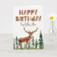 Unik hjort, tallar & trä -grattis på födelsedagen- bokstäverad födelsedagskort. Kan anpassas!