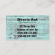 Det här affärskortet har fram och bak en bakgrund av träskiffer med vävt grått. Träfotografiet på framsidan fyller de lämnat två tredjedelarna av kortet och ställs diagonalt mot en grått-bakgrund. De två inslag skiljs åt med en vit linje. Träfotografiet med tealflis är bakgrunden på fullt. På framsidan finns vit och svart text med svart text på baksidan. Den här utformningen av träfotografiet fram och tillbaka kan fungera bra för återställande av affärskort, återvunna träkonst och möbler, snickare, byggnadsarbeten eller kanske ditt företag.