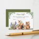 Öka upphetsningen hos din Woodland Animals-temade babyåda med våra vackra Raffle-kort! Uppmuntra gästerna att gå med roligten genom att ta med sig blöjor, och i gengäld kan de vinna ett charmerande pris! De här korten är ett sömlöst komplement till vår Woodland Collection. Låt de dystra donationerna hälla sig i ett milt regn i hjärtat av det förtjusade skogen! Utforska vår exklusiv Woodland Collection paket för att få en enkel och snygg duschinstallation för barn. Gör dina dykdonationer till en del av skogsmagin! Köp nu en minnesvärd babydusch.