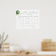 Designen på kalender för gissning av datum för baby shower är ett vackert exempel på enkelhet i sin finaste form. Användningen av en mjuk och skön vattenfärgsteknik lägger till en touch av elegans i designen, medan det minimalistiska tillvägagångssättet framhäver skogstemat. Färgpaletten är återhållsam, med en subtil växelverkan mellan dämpade gröna nyanser som inger en känsla av lugn och stillhet. Kalender kommuniserar viktig information samtidigt som den behåller sin minimalistiska estetik, vilket gör den till ett perfekt exempel på skönhet och funktionalitet kombinerat. Matchande föremål finns tillgängliga.