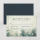 Rustikt bröllop RSVP med granar dekorerade med fairy lights.