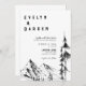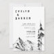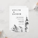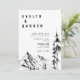 Bröllopsinbjudan till skogbergsberg med hand plockade, natur, högt träd, inbjudan till bröllop i landskapet.