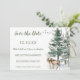 Meddela dina kommande bröllop med våra Skog Berg Tall Spara Datum-kort. Anpassa med din festinformation för att skapa en unik Spara Datum som din familj och vänner säkert kommer att älska. Designad med en tallskog, två hjortar med fåglar, moderna typsnitt och vattenfärgseffekter.
