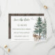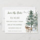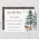 Meddela dina kommande bröllop med våra Skog Berg Tall Spara Datum-kort. Anpassa med din festinformation för att skapa en unik Spara Datum-inbjudan som din familj och vänner säkert kommer att älska. Designad med en tallskog, två hjortar med fåglar, moderna typsnitt och vattenfärgseffekter.
