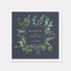 Elegant vattenfärgsmotiv med skogsblad, personliga pappersservetter. Mallen har två fält för namn och evenemangsdatum. Bakgrundsfärgen, som visas i marinblått, kan anpassas.