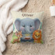 Den här skogsinspirerade djurtema kudden för födelsedagar har en söt illustrerad elefant som håller en födelsedagstårta, tillsammans med en söt hjort och ett lejon i mjuka och lekfulla färger. Den milda saga-stilen ger en varm och glad look som är perfekt för barns födelsedagsfirande.
