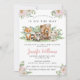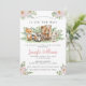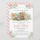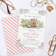 Watercolor söt rosa blommigt Woodland Forest animals flicka duschinbjudan. En vild är på väg att duscha barn.