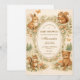 Denna charmiga skogsbarnskuppsdesign har söta skogsdjur samlade runt en delikat vintage-ram, vilket skapar en varm sagobokscen som är perfekt för att fira en liten en på väg. Söta illustrationer av en kanin, tvättbjörn, ekorre och uggla omges av små svampar, kottar, vilda blommor och mjuk skoggrönska. Den varma neutrala färgpaletten och den skira akvarellstilen ger designen en mysig, nostalgisk barnkammarsatmosfär inspirerad av klassiska barnbokillustrationer. Perfekt för naturinspirerade barnkalas, skogsfiranden eller rustika skogssamkväm.