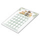 Vattenfärgsdjur Skogsdjur Anteckningsblocket Baby Shower Bingo Lakan. Baby djur omfattar Bear, Hjort, Moose, Raccoon, Bunny Rabbit, Fox och Uggla på eukalyptus löv och skogsgreenergi.