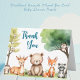Skogsdjur Baby Shower Blue Tackcard You Card! Tjugolandsdjur Tembabydusch tack vare ditt kort med illustrationer av en posum, doe, björn, räv, tvättbjörn och uggla på skogsscenen. Roligt och lekfulla trädjur gör perfekten till ett tack till dem som kom till din babydusch.