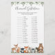Skogsdjur: jaktkortet för babydusch för djurdräktighetsspel innehåller en illustration av vattenfärgsskogar och vattenfärgsgrey eukalyptus garland och handskrivet stil-typsnitt för elegant.