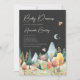 Tema för söderut och torvskog, med vattenfärgade illustrationer av vilande skogsdjur, fladderande myter, ett glansande måne och ett gott bergslandskap. Perfekt för en gender-neutralt-dusch, med boho, naturinspirerad charm. Den minsta ljust grönt texten på en mycket mörk, nästan svart bakgrund. Fullständigt anpassade med din händelseinformation.