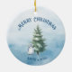 Fira julhelgen med det här dubbla-sidade anpassadet, festliga julprydnad med en charmig vinterscen på en vattenfärgsbakgrund. På ena sidan finns det en bild av vackra skogsdjur, omgiven av snö-täckt träd. Baksidan har en enskild penguin som önskar dig eller dina kära en God jul. Den frostigt blå och vita paletten färg skapar ett fredligt, snöbrinnande underland. Anpassa med din familj namn och året för att få en speciell beröring. Perfekt för att sprida helgdag till nära och kära, den här prydnaden exuderar värme, magi och personlig elegans. Skicka e-post med frågor om redigering eller design till pawsnclawspaperie@gmail.com.