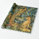 SKOGSDJUR,RAVEN,FOX,PEACOCK Blue Grönt Blommigt Presentpapper