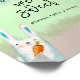 Könsneutrala inbjudningar till babydusch. En illustration av vattenfärgade trädsdjur: räv med blåbär i tassar, bär med hallon, häckande med päron, kanin med morot. Vattenfärgens bakgrund är flerfärgad.