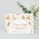 En charmig skogsdesign med mjukt illustrerade skogsdjur som rävar, hjortar och tvättbjörnar inklämda bland delikat grönska och subtila naturliga texturer. Den varma neutrala färgpaletten i kombination med den eleganta välvda layouten skapar en mysig men ändå raffinerad estetik som känns både lekfull och tidlös, vilket gör den perfekt för en naturinspirerad babyfest med en mjuk, sagobokstämning.