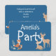 Skogs födelsedagsinbjudan för barn med söta skogsdjur, naturillustrationer och anpassningsbar text. Perfekt för pojkars eller flickors födelsedagar, småbarnsfester, skogsbabytan och utomhusfiranden.
