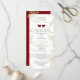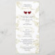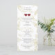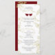 Fåglande fåglar och lacy löv foliage woodland, rustik land i rött och guld. Bröllopsprogrammets kort är två sidor med ceremonier på framsidan och bröllopsfesten på baksidan.